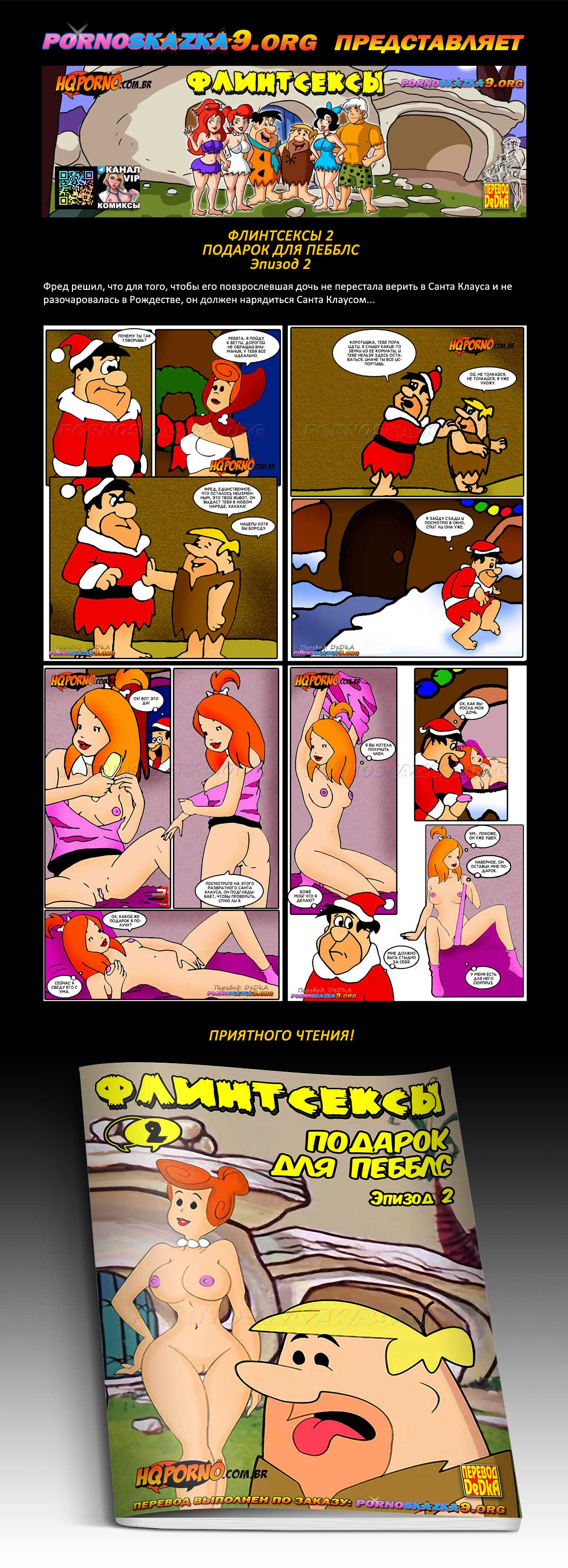 Порно комикс «Флинтсексы. Часть 2. Подарок для Пебблс. Эпизод 2. Флинстоуны.» Фред решил, что для того, чтобы его повзрослевшая дочь не перестала верить в Санта Клауса и не разочаровалась в Рождестве, он должен нарядиться Санта Клаусом…